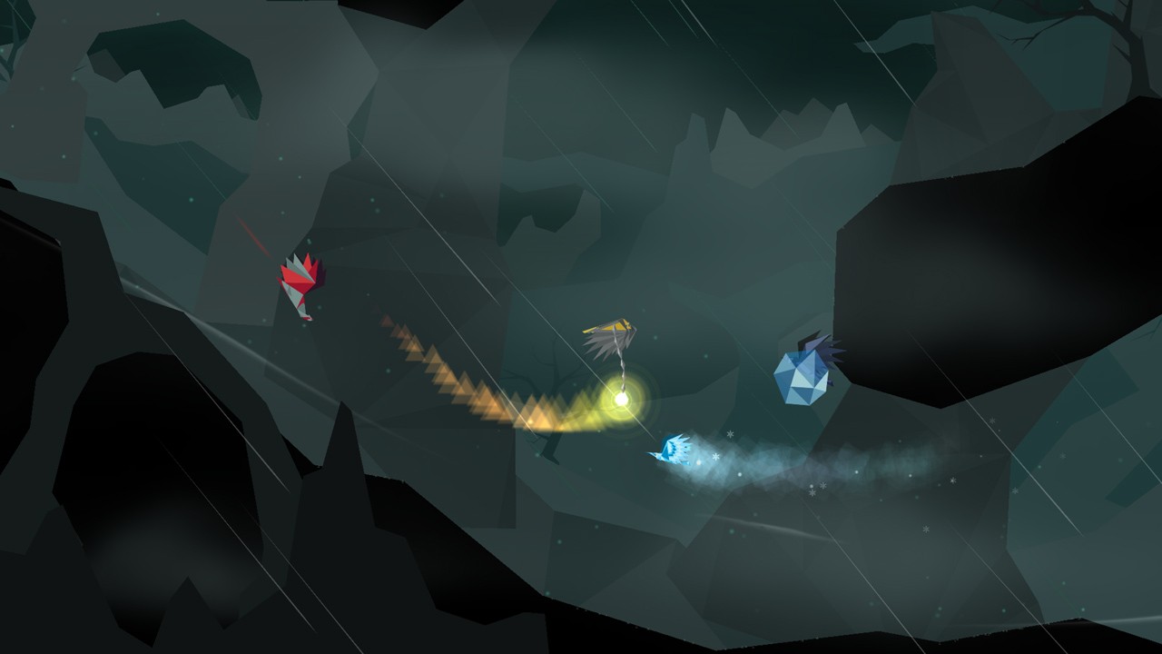 Initially, the asymmetrical levels are straight forward and naturally increase with difficulty. The difficulty comes from natural events such as lighting and rockslides, as well as the tighter parameters set. Soaring the skies in Chasing Aurora is a joy and the sudden shifts of direction especially when diving is extremely satisfying. This is a prime example where the core gameplay is excellently designed and feels rewarding, as you can feel yourself getting quicker and sharper with each push for that higher score.