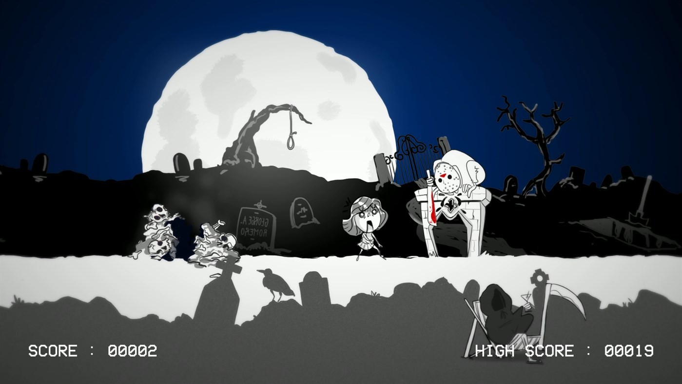 With a title that’s about horror and memory tests, you wouldn’t expect many laughs. Well, this is where you’d be wrong. The game opens with a cinematic cutscene that represents; the 2 human characters, the icons that form the obstacles, and the controller method. It was so bad that it was good, and it was reminiscent of my college drama days. Wooden acting, lame scenery, and costumes that had been found in a charity shop. It made a budget film look like a Hollywood blockbuster! Even though it was comical, and of a low standard, it represented the game fundamentals well, so if you consider that, then it must be a success. Graphically it has a clean look, with crisp lines and a distinct art style. The colour palette and tone leans towards a darker, more ominous look, and the cartoon characters are nice to look at.