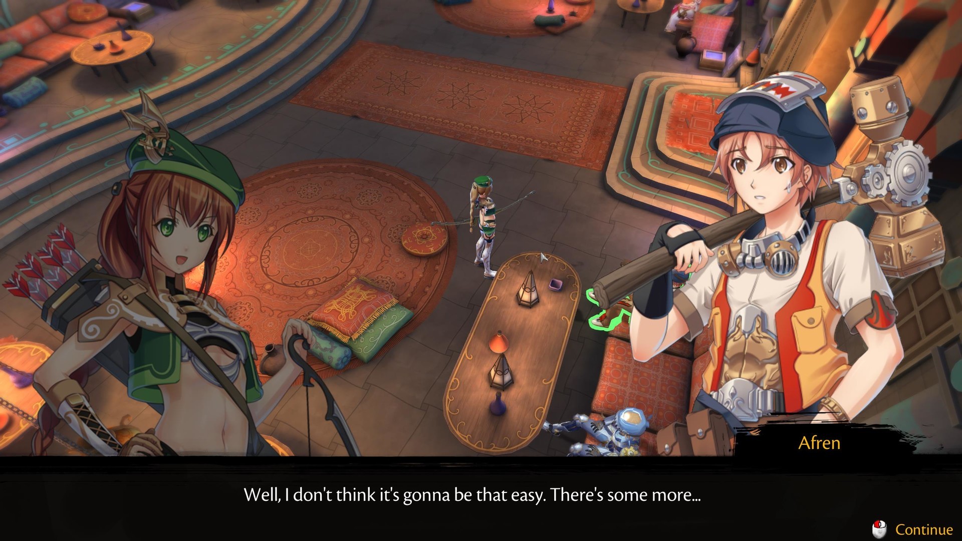 The character animations in Tears of Avia are also disappointing. They look stiff and lack personality, coming off as almost robotic. This wouldn’t be so bad if you could avoid looking closely at them, since the camera would be more zoomed out and it would make them less noticeable. Unfortunately, the camera zooms in while exploring hub towns, and the game frequently features attack cutscenes that show characters up close.