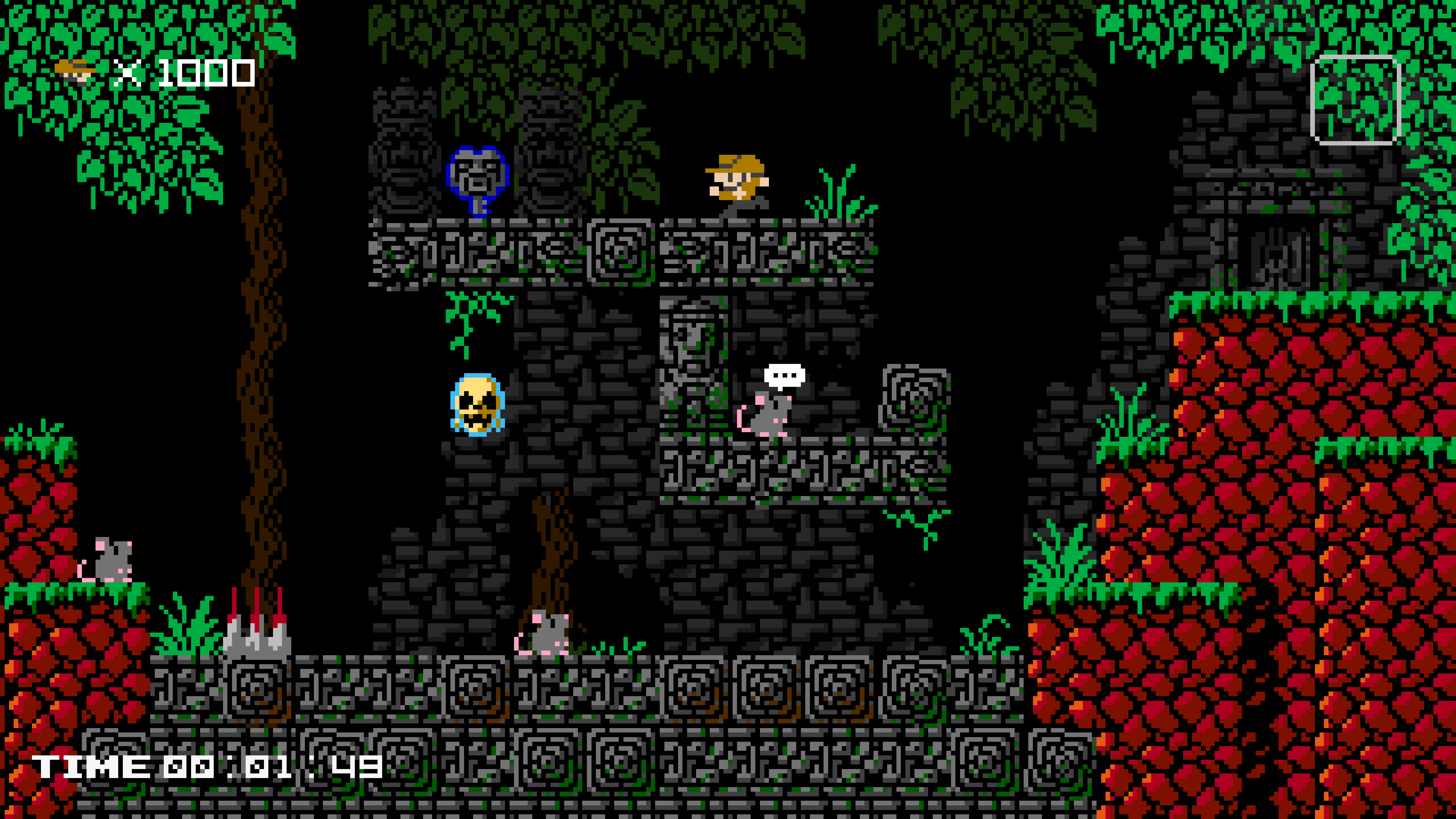 Amidst the array of retro re-imaginings, 1001 Spikes stands as one of the rare, true throwbacks. Many of today’s 8-bit style releases are just that, ‘8-bit style’. They capture the essence, the look and feel of the time, but often make additions and amendments to cater for more modern tastes, playing up to our nostalgia while still providing some of the comforts of modern game design. There are no such concessions to be found here.