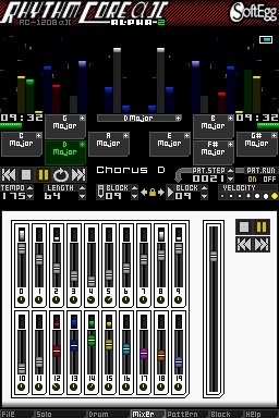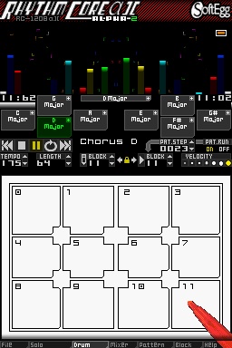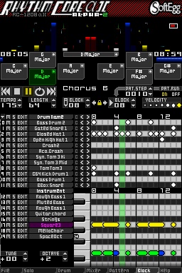 If you’re interested in writing, producing or even performing your own music then the 3DS is rapidly becoming an excitingly innovative and handy little tool to own. Earlier this month I had the privilege of reviewing ‘KORG DSN-12’, a sequencer with a combination of features for creating your own electronic synthesized tracks which I was extremely impressed with. It never occurred to me that the current generation’s answer to the Game Boy would be capable of running such a user friendly and comprehensive piece of music software. Well, it turns out that ‘KORG DSN-12’ isn’t going to be a one hit wonder for the system as software company ‘Softegg’ has now released another fantastic program onto the 3DS market, ‘Rhythm Core Alpha 2’.