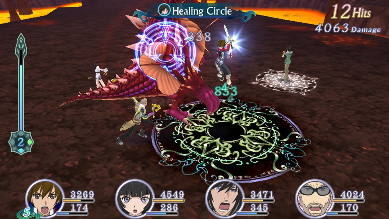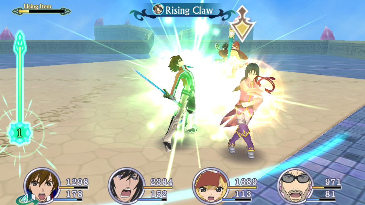 The core is based around basic strikes and assignable Artes (special attacks in human talk) – these will get you through the majority of the bread and butter randomly generated battles, but as you progress and subsequently come across trickier opponents, you will soon find yourself having to employ Spiria Drives, Chase Links and counters etc. You will also have to ensure that the remainder of your automated team are prepared for battle with their standard actions defined by the choices you make pre-battle. Whether it be attacking, defending or supporting, your decisions relating to the remainder of your team can (and will) mean the difference between victory and defeat.